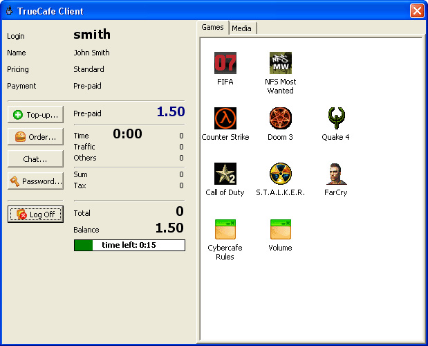 TrueCafe Internet cafe software supports: